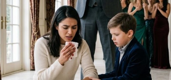 A las ocho en punto, Emily Carter limpiaba la mesa de centro de cristal en la sala de estar de la mansión Harrington cuando oyó el rugido de