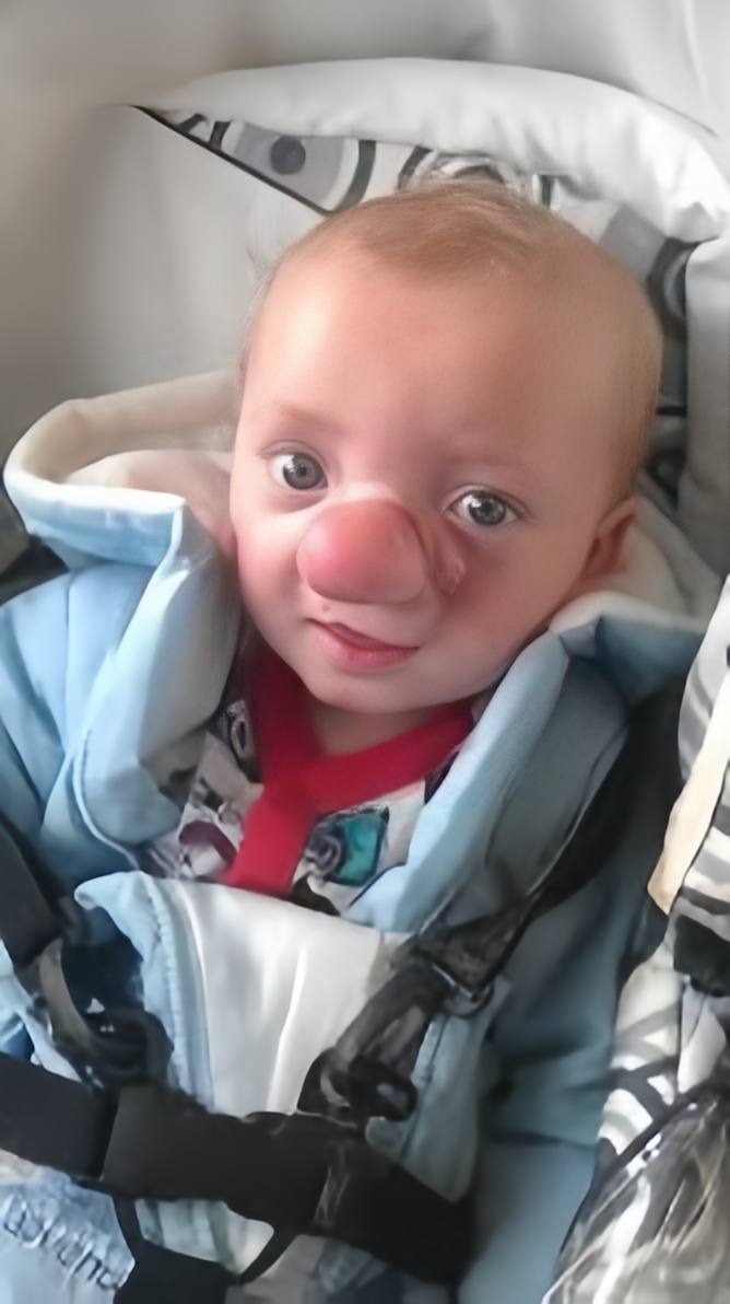 El bebé Ollie Tresis nació con una afección extremadamente rara llamada encefalocele, que provocó que parte de su tejido cerebral creciera a través de un hueco en su cráneo. A medida que crecía, la afección hizo que su nariz se agrandara peligrosamente, lo que lo dejaba en riesgo constante de meningitis incluso por la más mínima lesión.