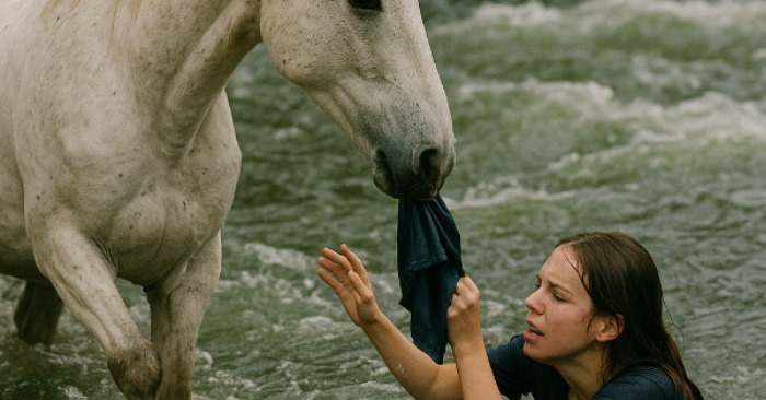 Fue como un milagro: la corriente era fuerte, las rocas resbaladizas, pero el caballo no se rindió. Tiró de Anna hasta que llegó a aguas poco profundas. La joven, temblando y tosiendo, salió a la arena. Luna se paró a su lado, inclinó la cabeza y le dio un golpecito en el hombro a su dueña con su nariz mojada.