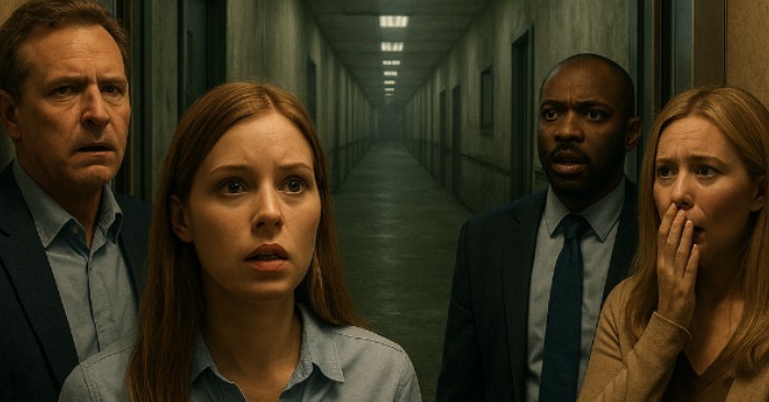 El pasillo que se extendía más allá no pertenecía a su edificio de oficinas. Se prolongaba sin fin, con papel pintado descascarillado y luces fluorescentes que zumbaban. El suelo estaba cubierto por una moqueta de un verde descolorido y feo, y el aire olía a polvo y a algo metálico.