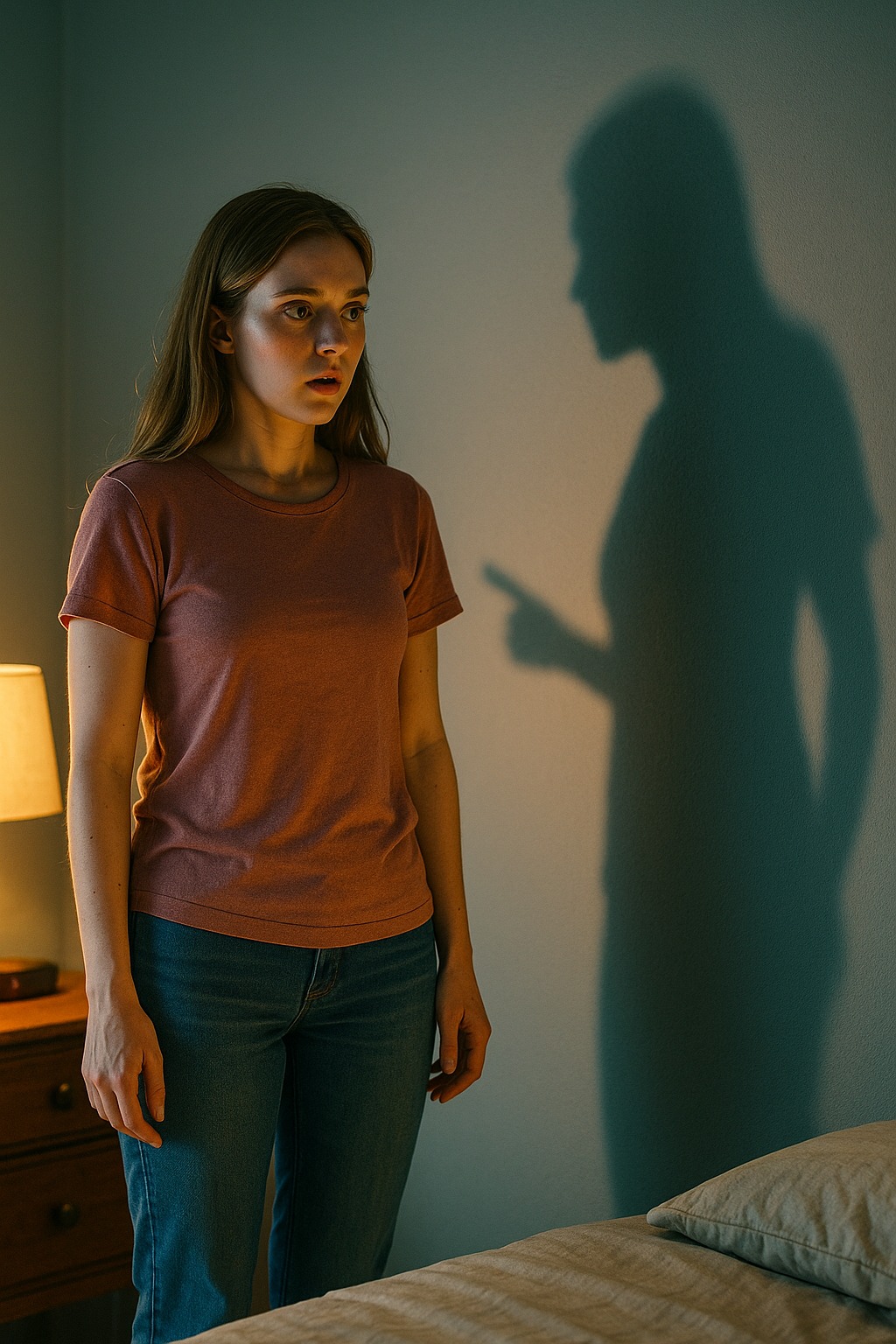 Una noche, Sarah se sentó en su cama, con la lámpara proyectando su silueta en la pared. Su sombra levantó la mano sin que ella se moviera. Se quedó paralizada. La mano señalaba su mesita de noche.