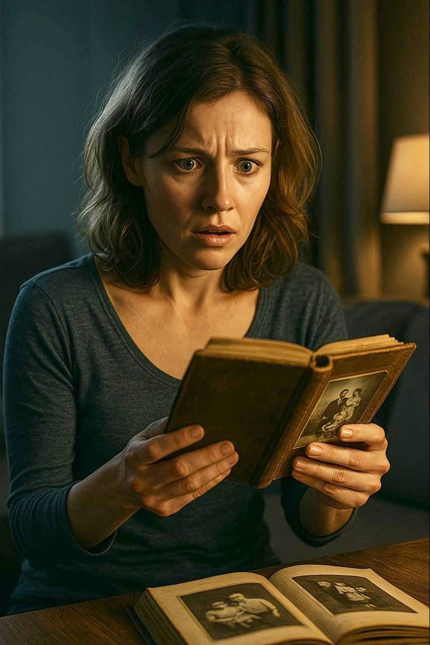 Marina bajó, sopló el polvo y se sentó a la mesa. Las primeras páginas no despertaron sospechas: la boda de sus padres, fotos escolares, vacaciones. Pero hacia el final, entre las fotos descoloridas, vio una foto que le hizo dar vueltas la cabeza.
