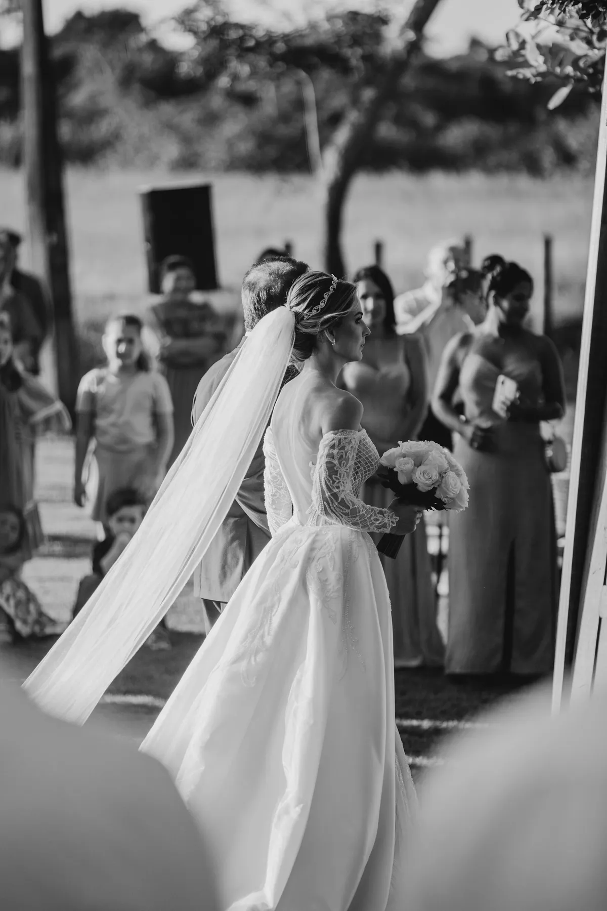 Veo otra vez en mi mente esa imagen en blanco y negro — la novia caminando por el pasillo, con una sonrisa delicada que apenas se sostiene en su rostro.