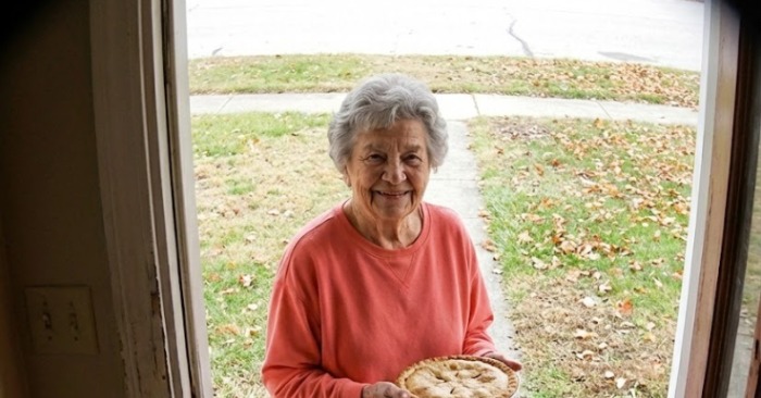Jocelyn estaba en la puerta, con un vestido rosa pálido y una tarta con tapa de rejilla en las manos. Olía a canela y calabaza.