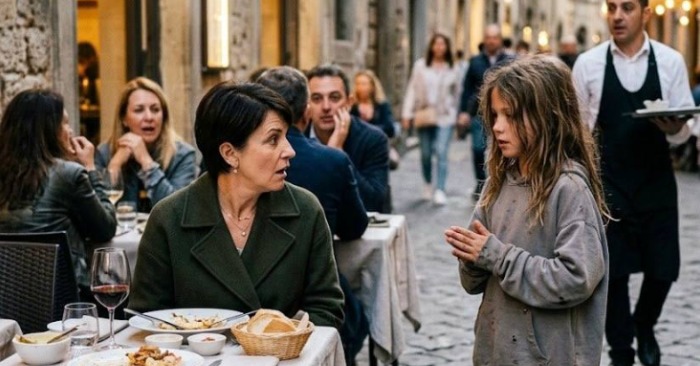 Una niña pequeña, descalza, con la ropa desgastada y polvorienta por la calle, apareció en una mesa donde las copas de cristal brillaban y la plata pulida reflejaba la luz del sol que entraba por los altos ventanales.