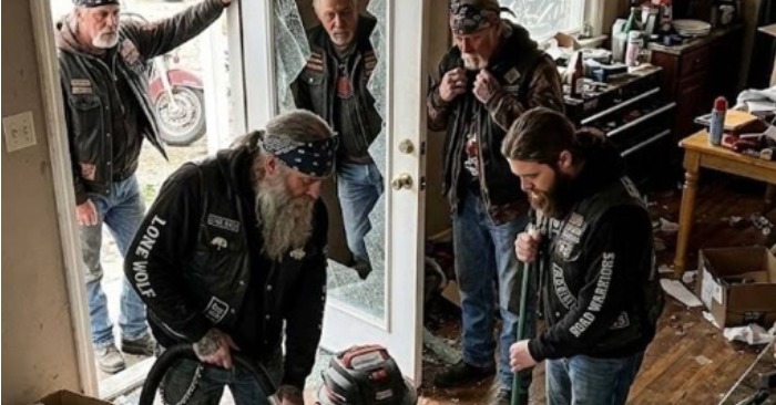 La gente simplemente vino a ver a quince motociclistas renovar la casa más triste de la calle.