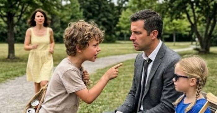Elena estaba detrás de ellos, elegante como siempre, pero su sonrisa se desvaneció al ver al chico.