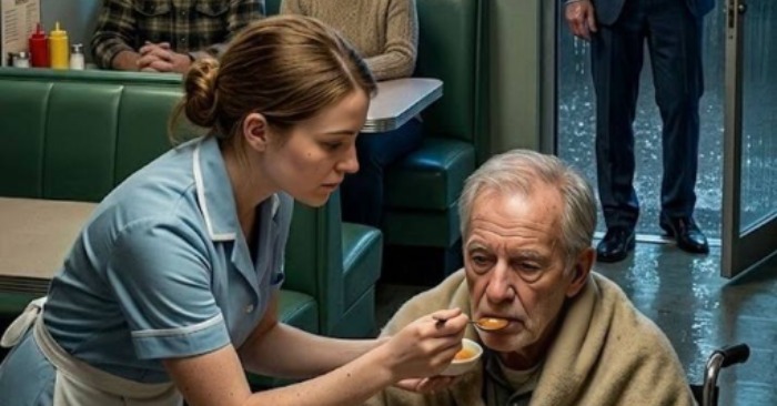 Afuera, bajo la tenue luz de la farola, un anciano estaba sentado en una silla de ruedas. La lluvia le caía sobre la delgada chaqueta. Le temblaban las manos. No había coche, ni acompañante. Solo una figura frágil, abandonada a la tormenta.