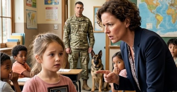Maya sabía que tenía una foto en casa: la de su padre con uniforme, con Ranger sentado a su lado con una compostura impecable. Pero nunca pensó que tendría que traer pruebas. Los niños no traen pruebas a la escuela.