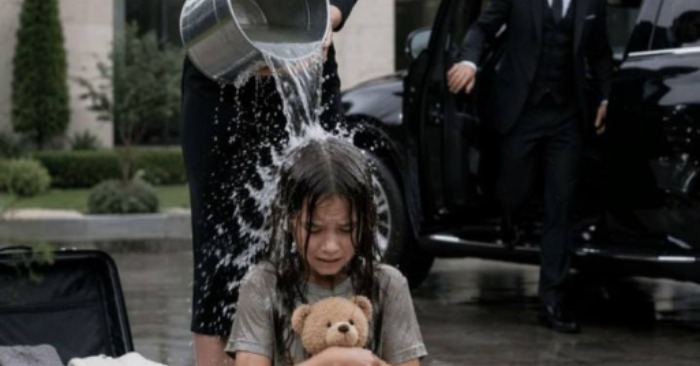 Emily apenas comprendió lo que sucedía mientras el agua helada la cubría. El impacto la dejó sin aliento. La ropa se le pegaba al cuerpo. El pelo se le pegaba a la cara. El osito de peluche se le cayó de la mano, empapado y pesado.