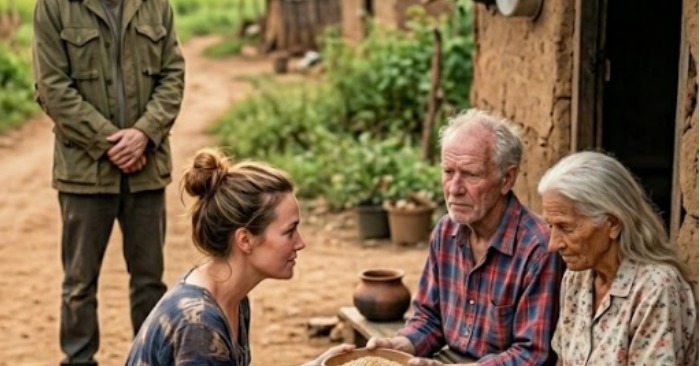 Elena se acercó a dos ancianos.